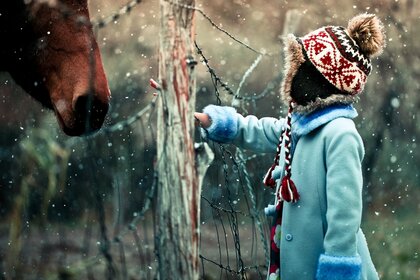 Dziewczyna karmi pięknego konia