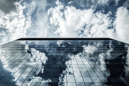 Firmament odbija się w oknach wieżowca