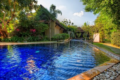 Niebo na powierzchni basenu latem
