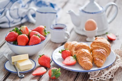 Serwis herbaciany. Śniadanie z truskawkami