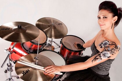 Dorosła kobieta na instrumentach perkusyjnych