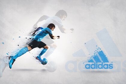 Piłkarz w niebieskim mundurze biegnie z piłką