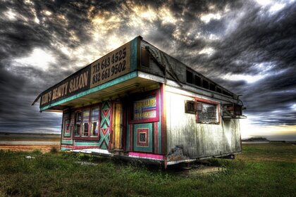 Kolorowe stoisko na tle ponurego nieba