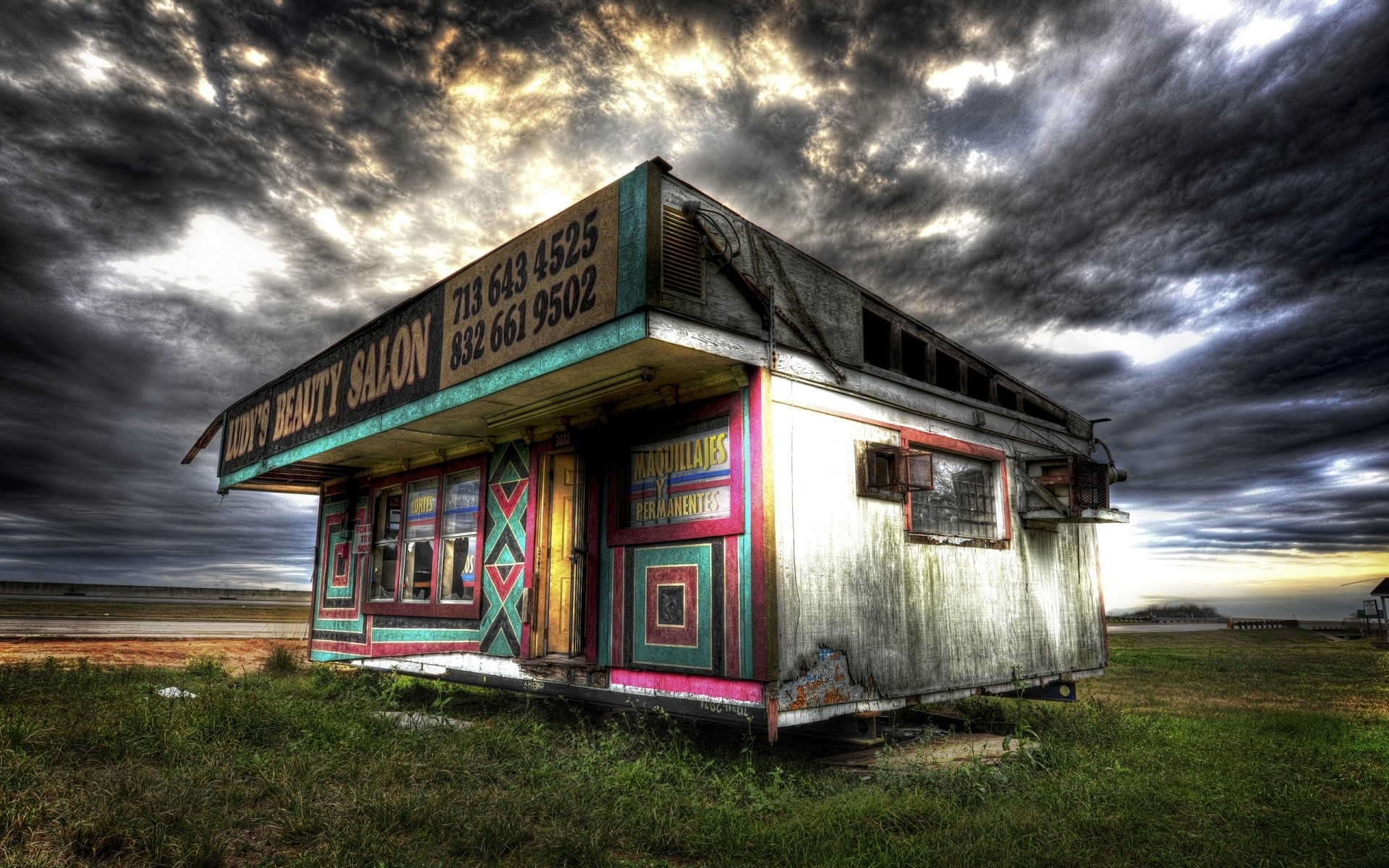 Kolorowe stoisko na tle ponurego nieba - tapety na telefon