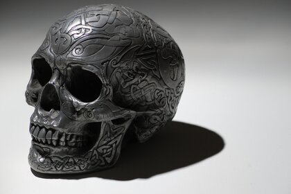 Anatomiczna czaszka z obrazami na powierzchni