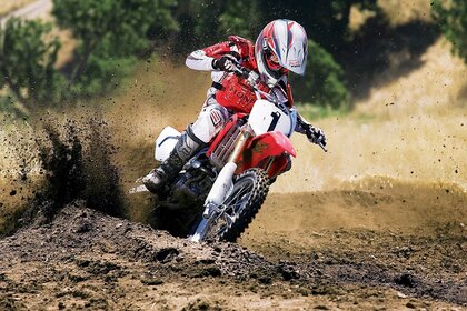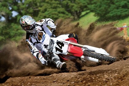 Motocyklista na wyścigach, niskie nachylenie podczas skręcania