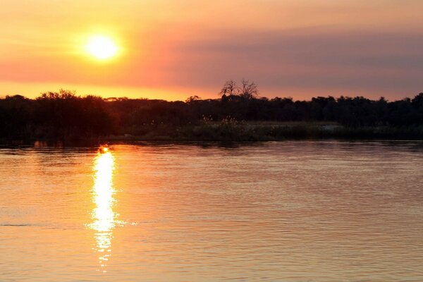 Zachód słońca na powierzchni jeziora