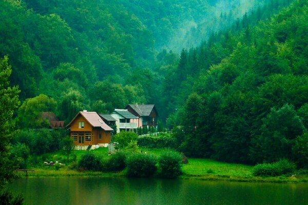 Robienie jelenia na tle lasu we mgle - tapety na pulpit