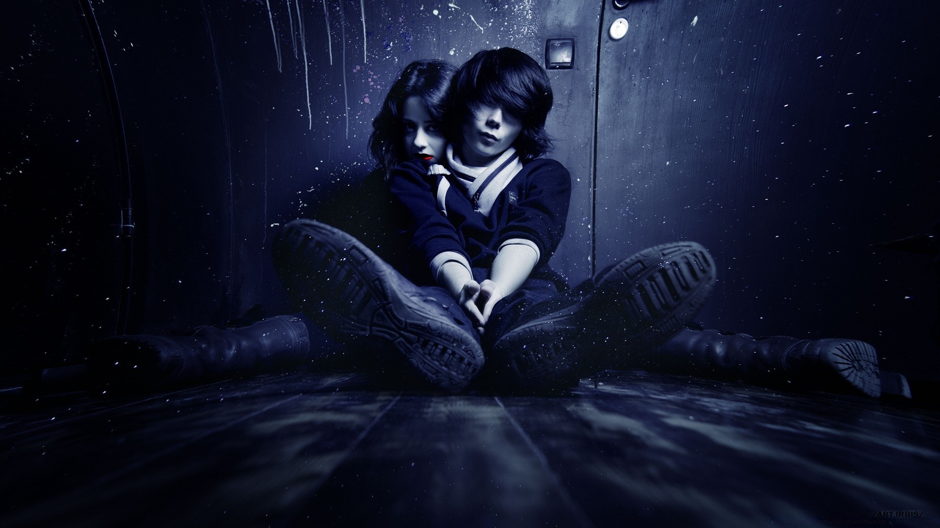 Nastolatki w ciemnym, tajemniczym pokoju - tapety na telefon