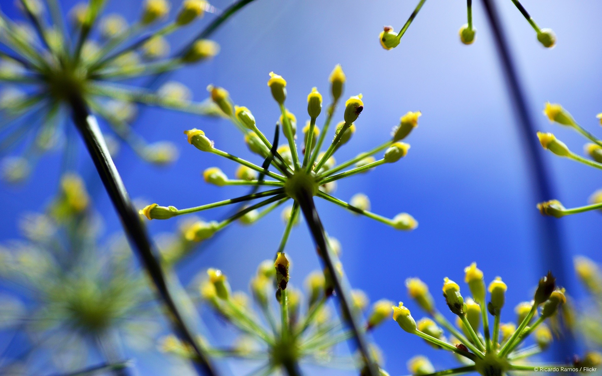 Parasole kwiatostany na tle błękitnego nieba - tapety na pulpit