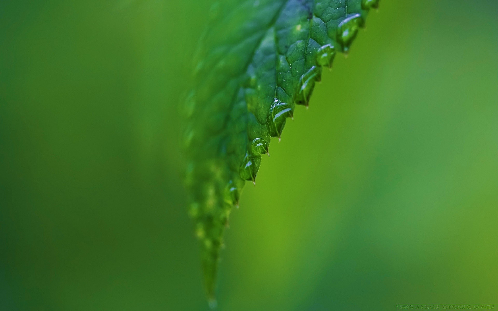 Krople deszczu na zielonym liściu - tapety na pulpit