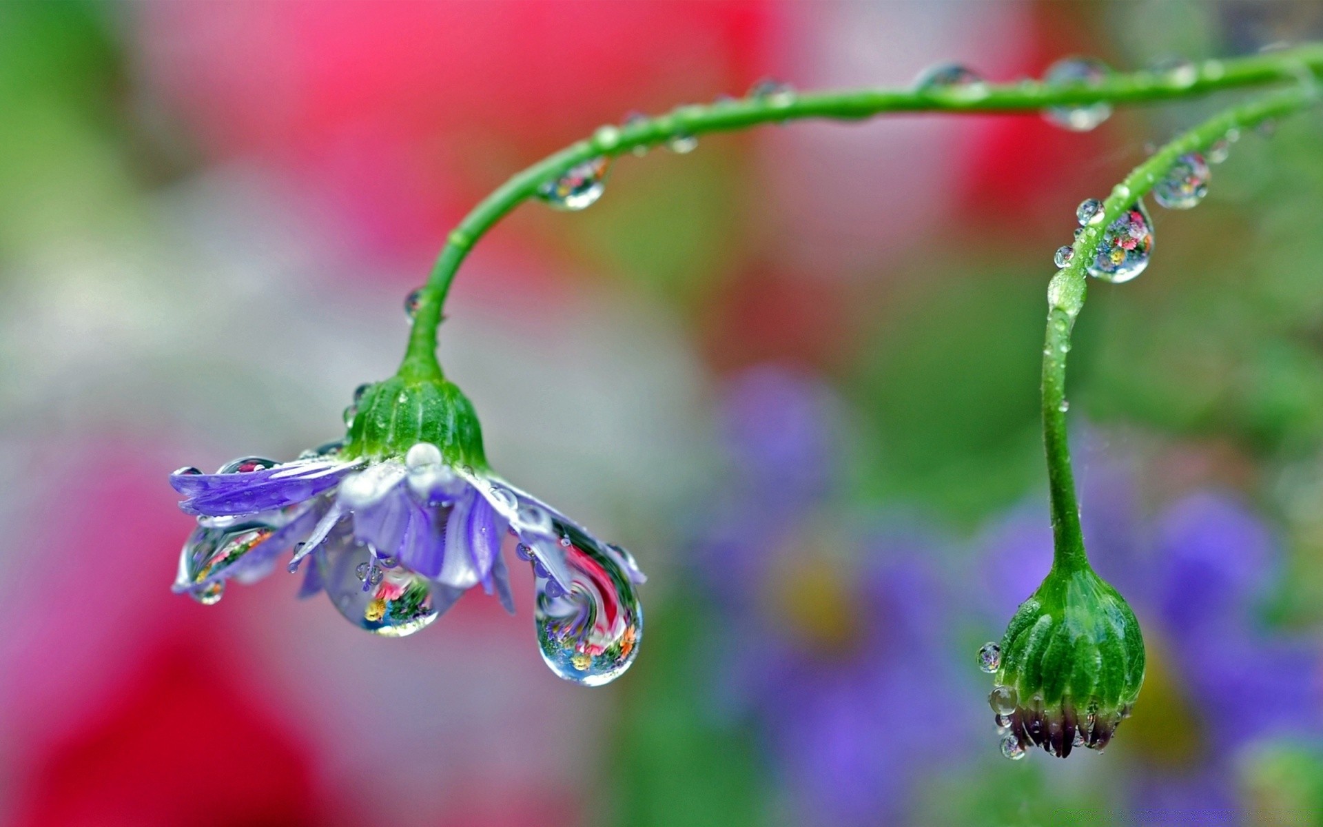 Krople deszczu na kwiatku w polu