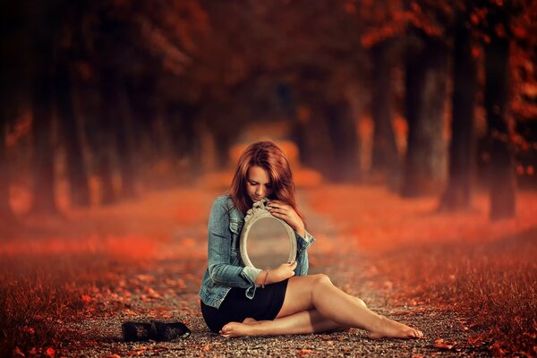 Coat girl w jesiennym lesie