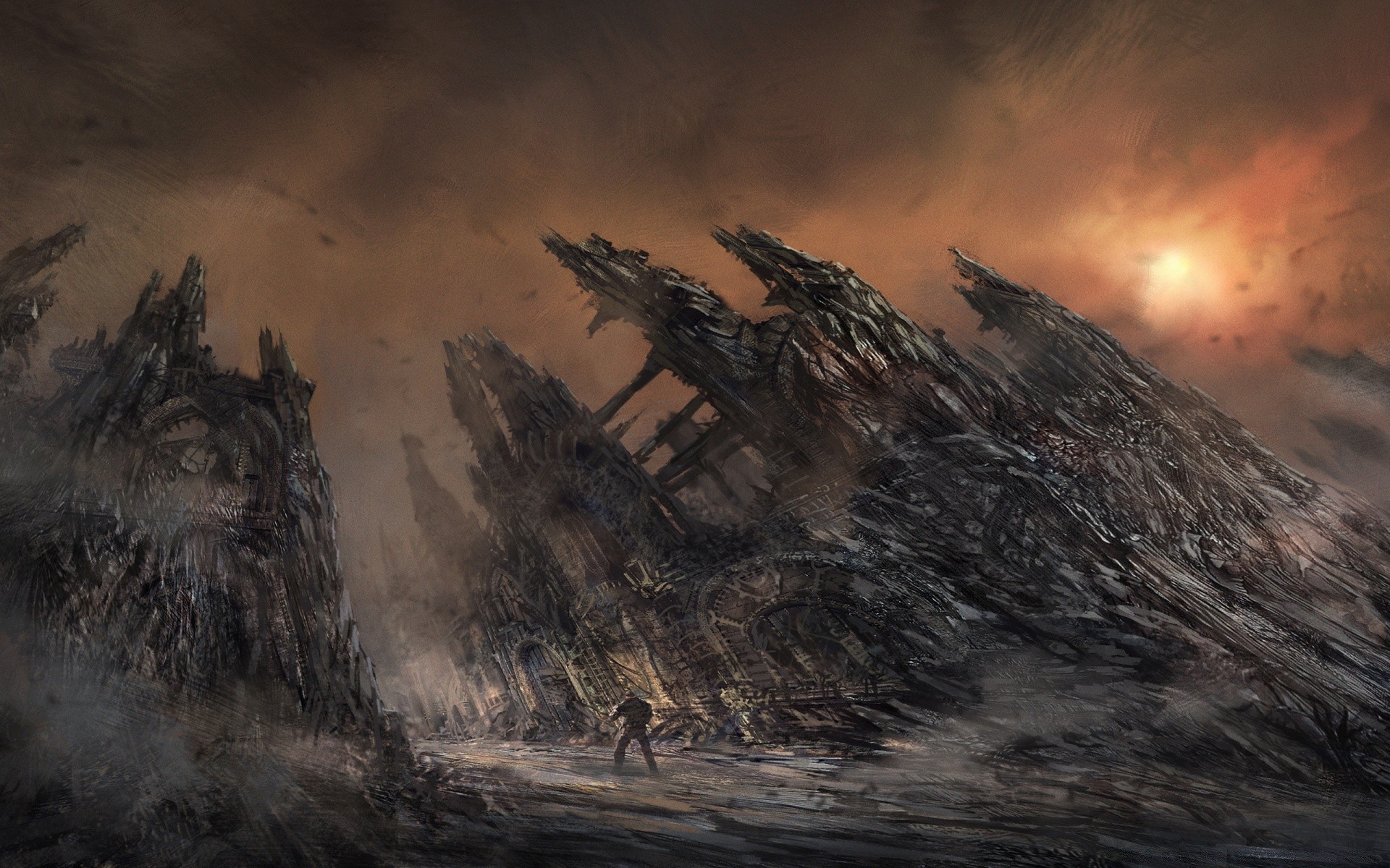 Apokaliptyczne miasto i samotna sylwetka