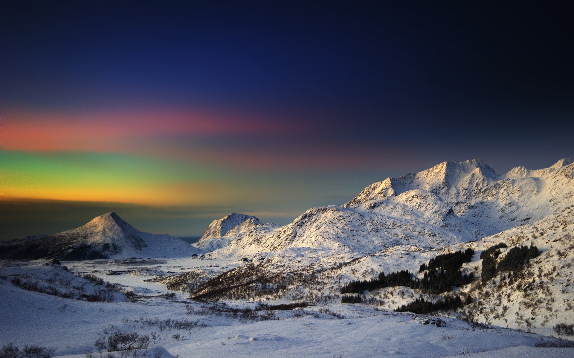 Zorza polarna za górami