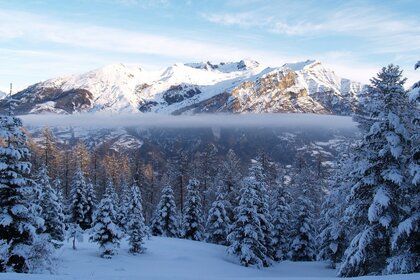 Samotna Podświetlana altana w ciemnym zimowym lesie