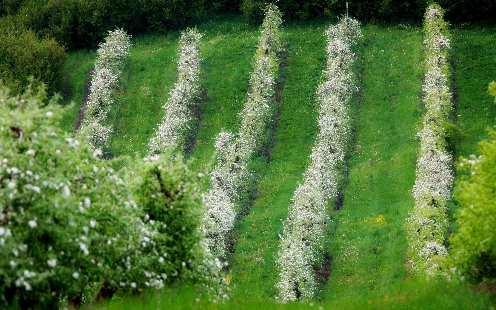 Kwitnące drzewa w rzędach