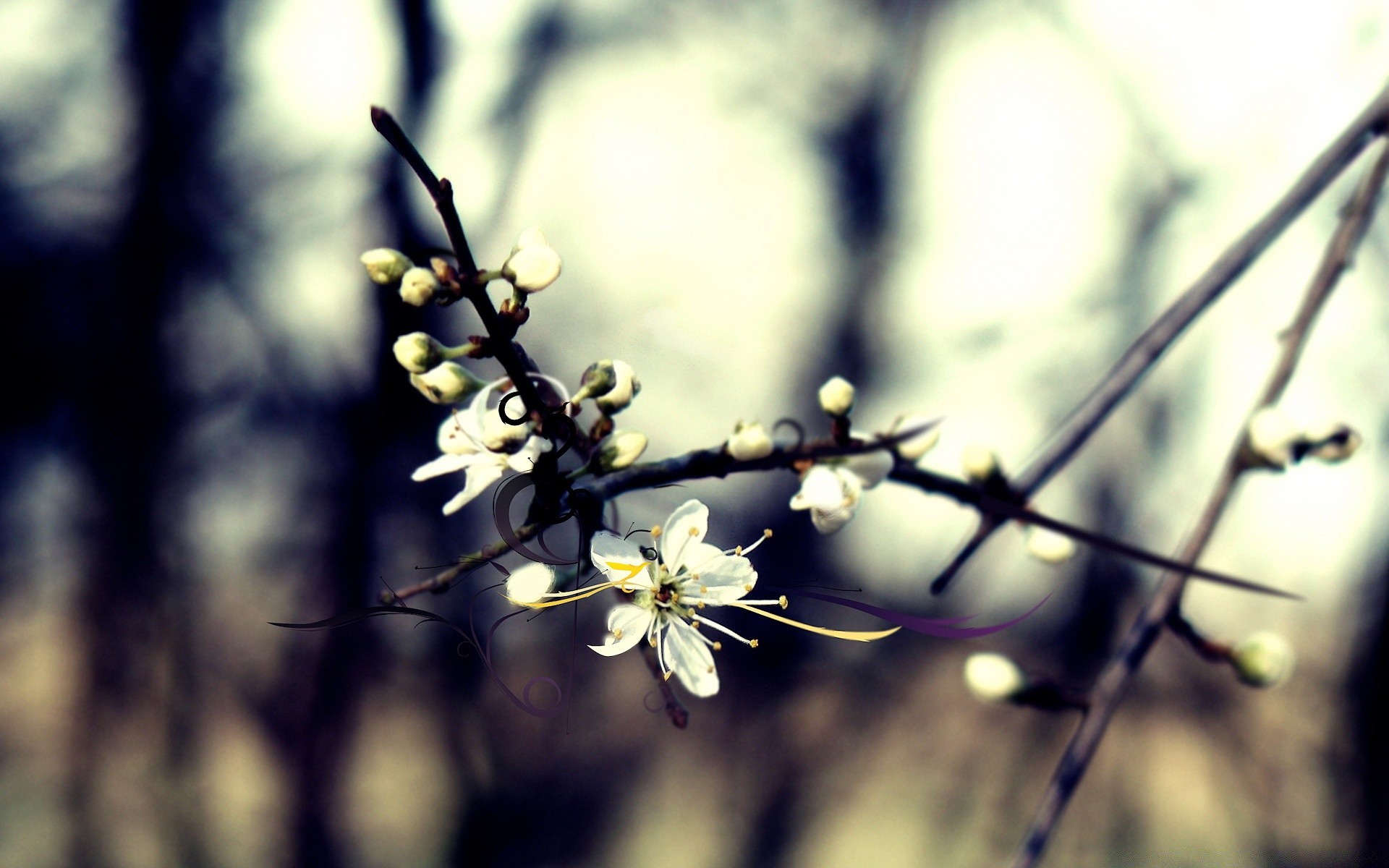 Wiśniowe kwiaty na rozmytym tle