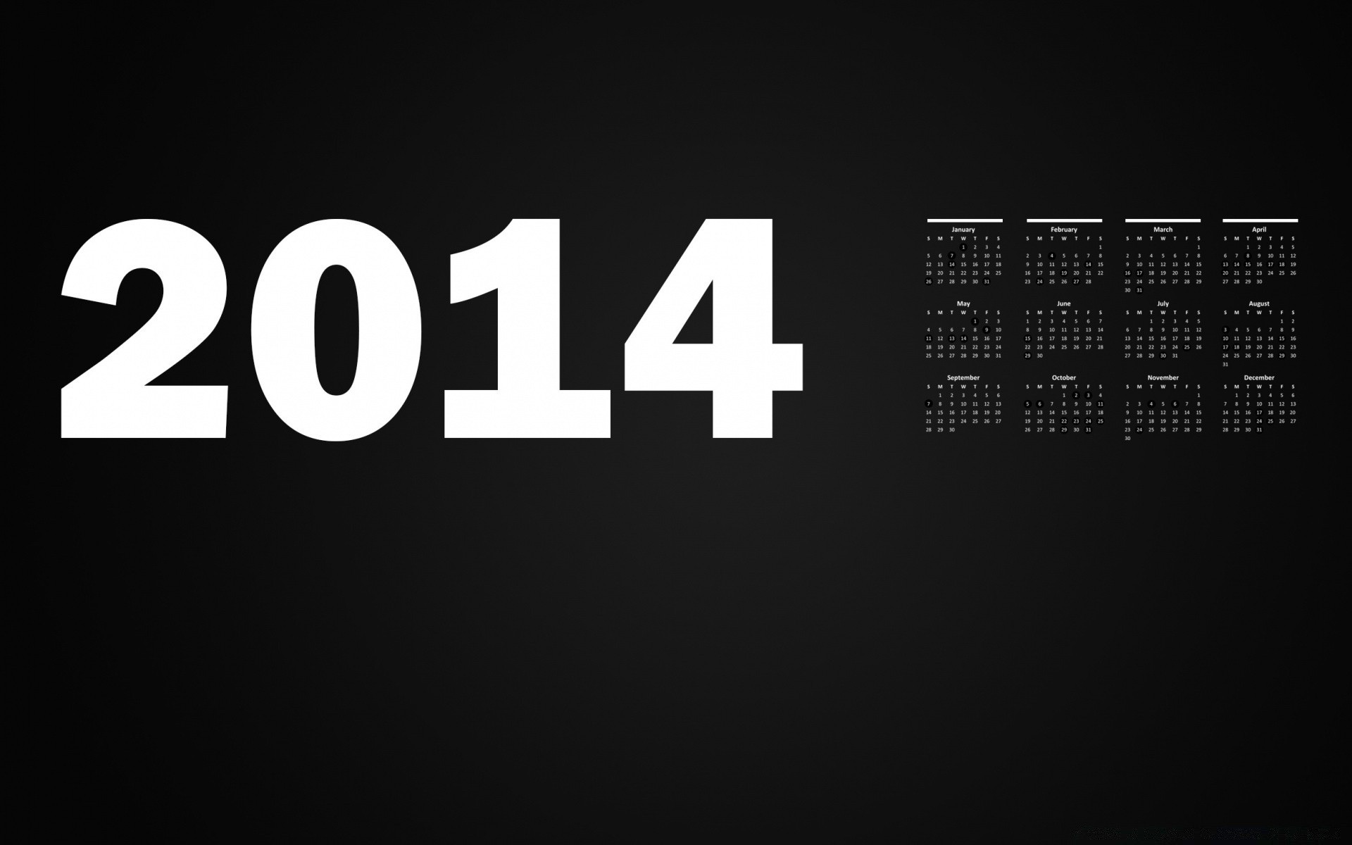Kalendarz z dwa tysiące czternastego roku na czarnym tleKalendarz z dwa tysiące czternastego roku na czarnym tle