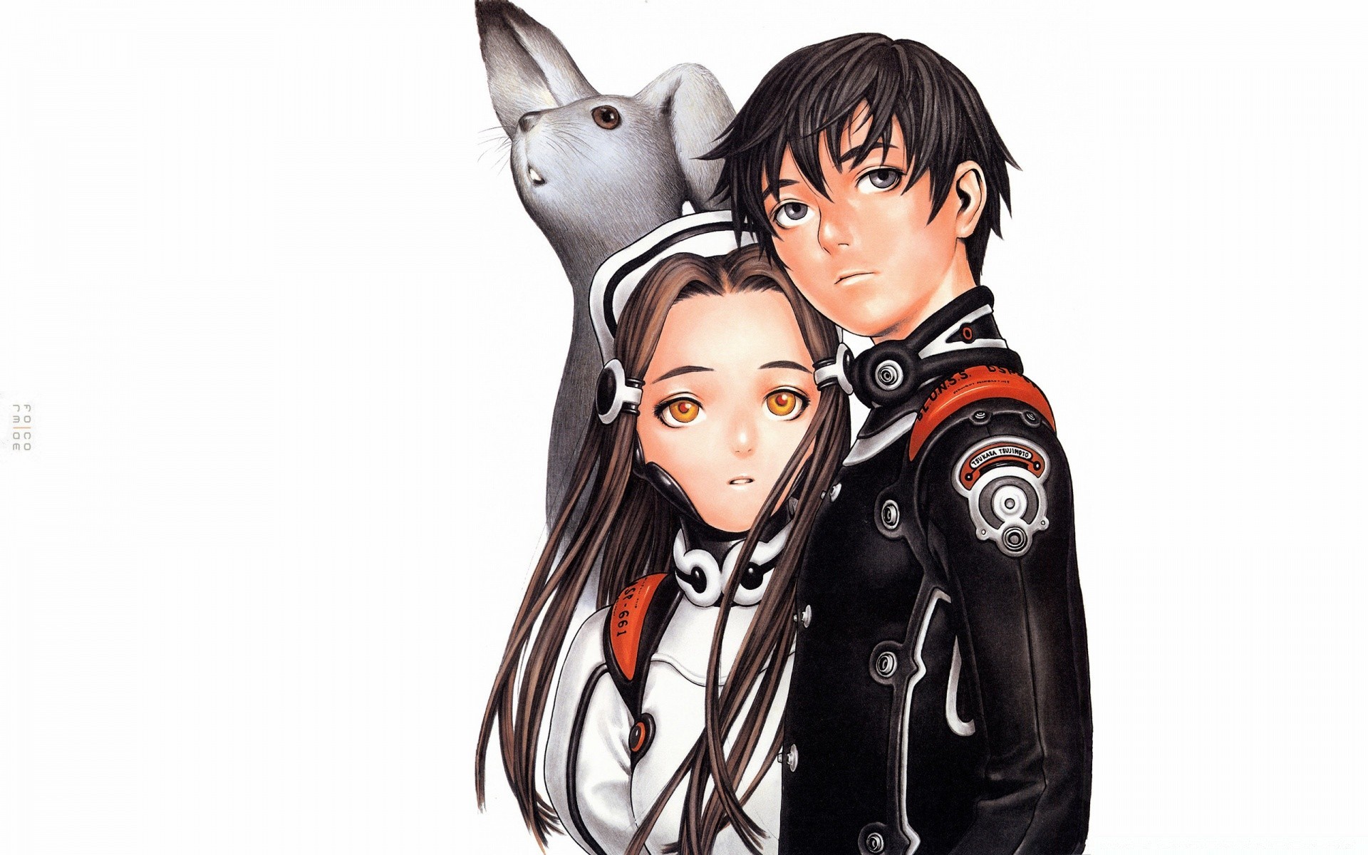 Dziewczyna i chłopak z anime na białym tle