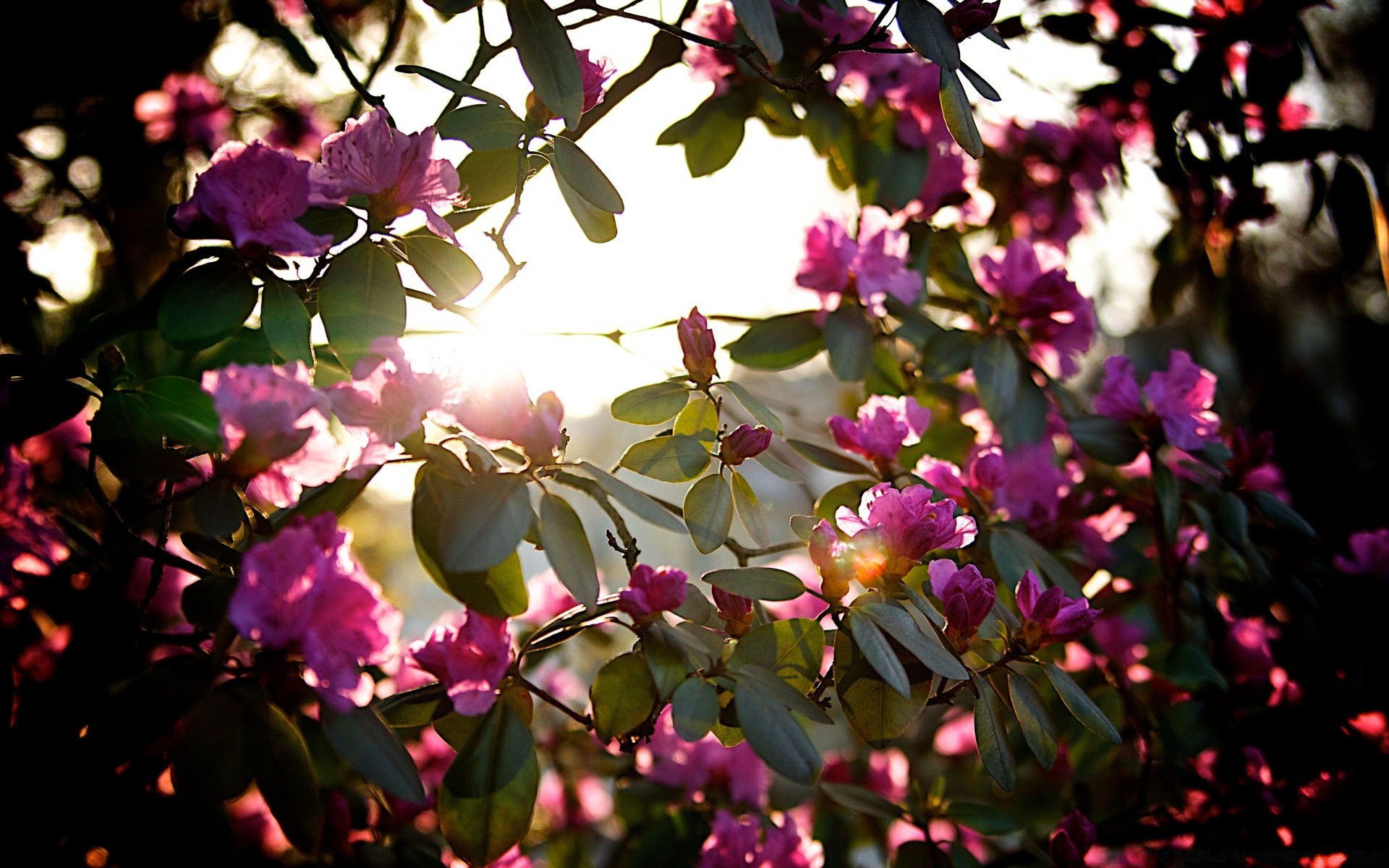 Różowe kwiaty drzew w jasnym słońcu