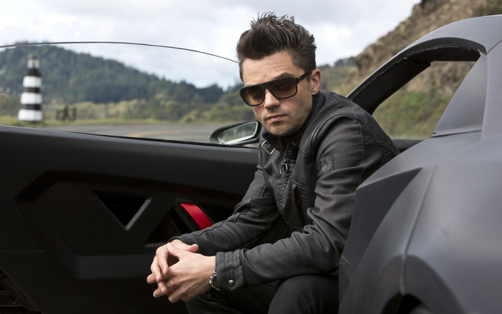 Mężczyzna siedzi z nogami schowanymi do siebie i oparł się o logtem