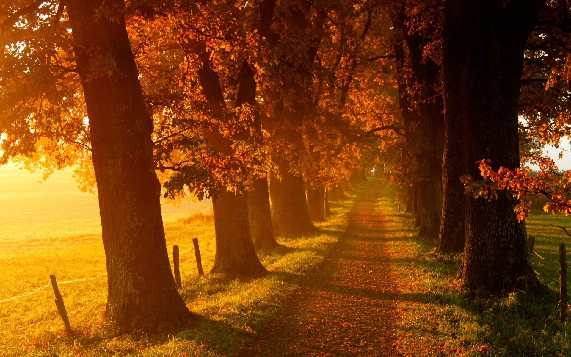 Jesienna trasa w pomarańczowych liściach Natura krajobraz