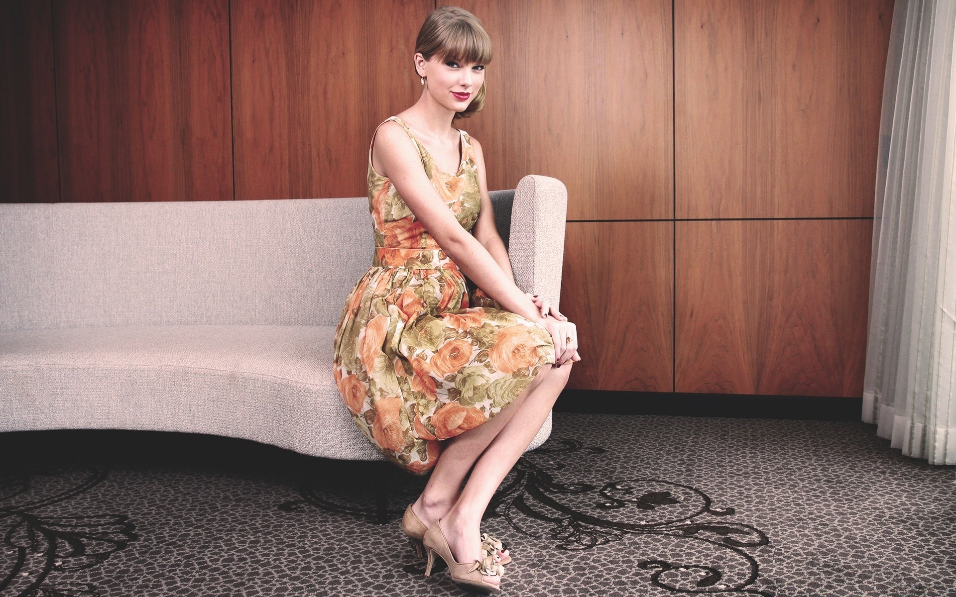 Piękna dziewczyna siedzi na kanapie