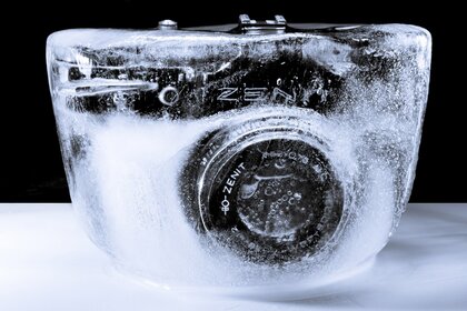 Czarny Aparat Zenith w kawałku lodu