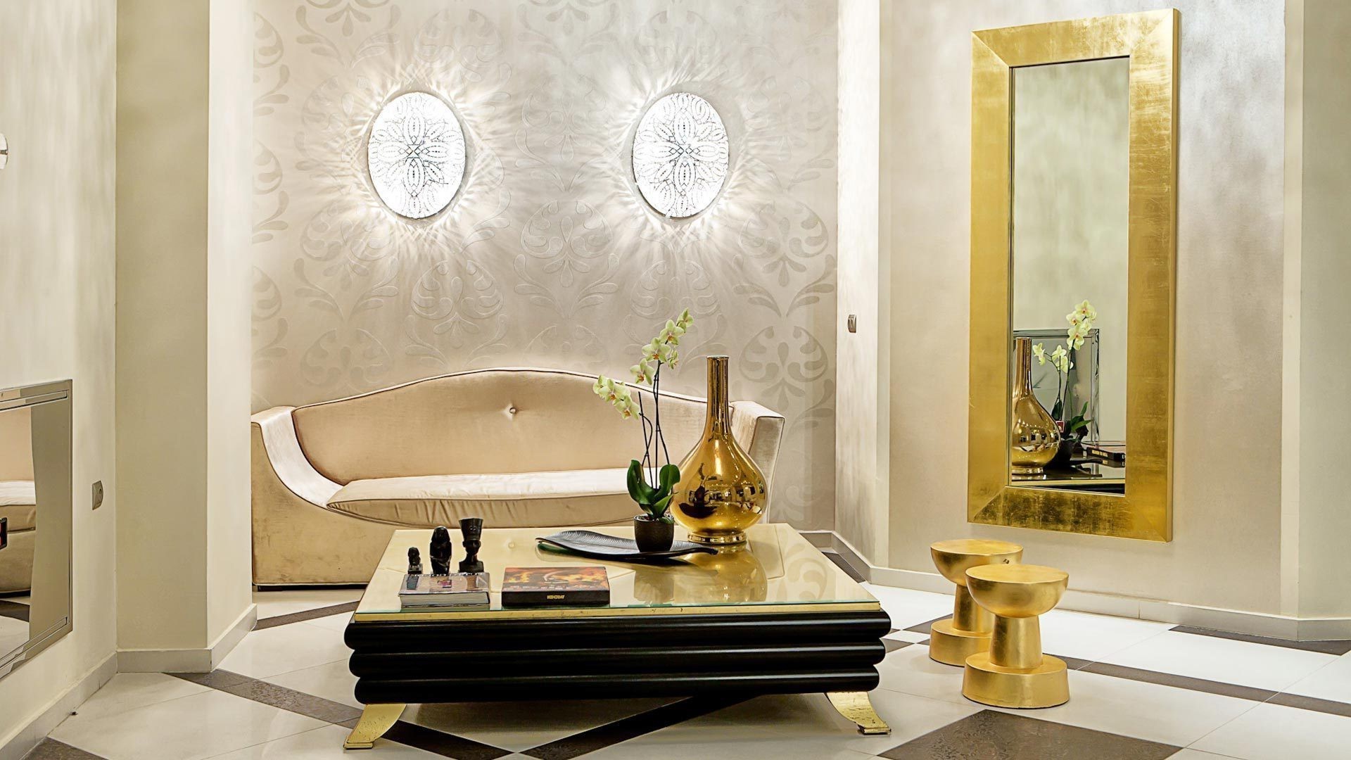 Pokój sofa w aorzinestol i sofa białe ściany białe podłogi beżowy