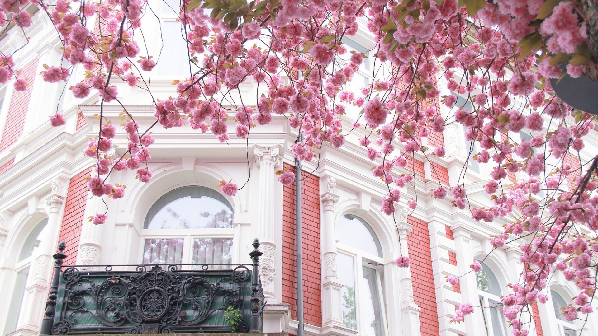 Architektura miejska ozdobiona kwiatami