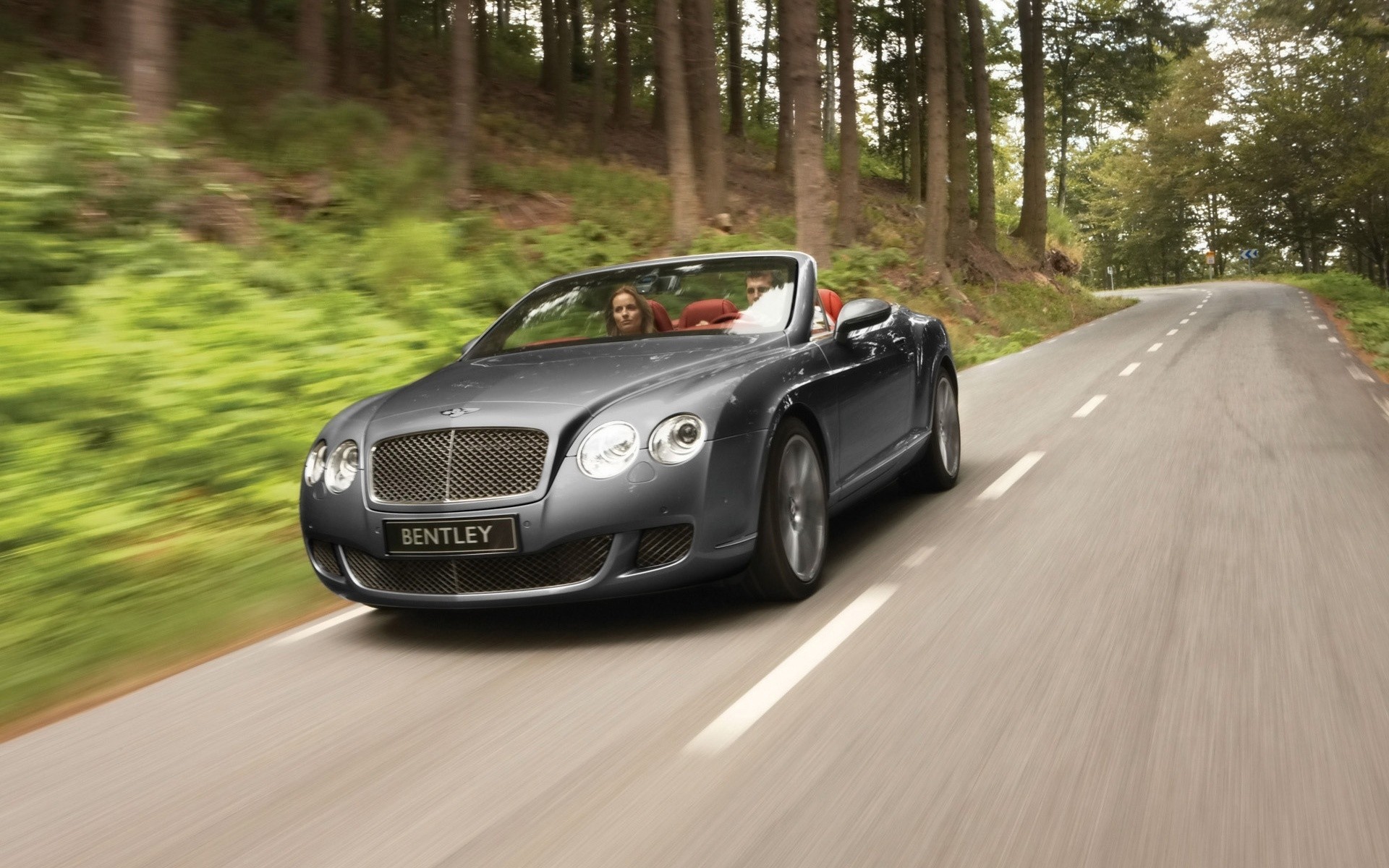 Samochód na drodze w lesie. Bentley na asfalcie