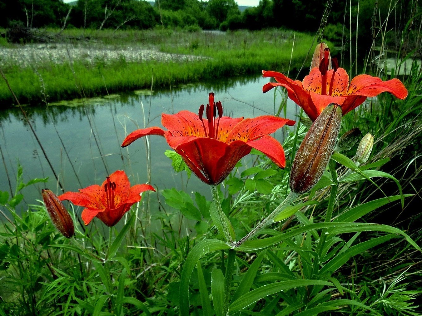 Jasne lilie na jeziorze
