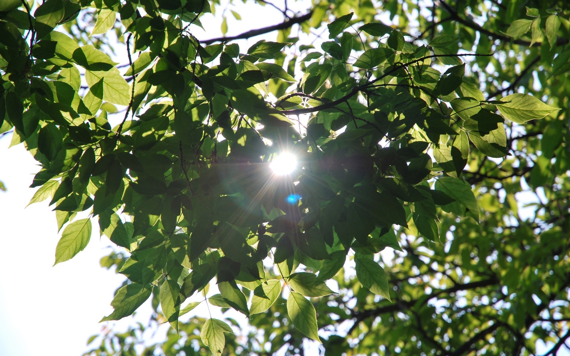 Promienie światła przechodzą przez liście