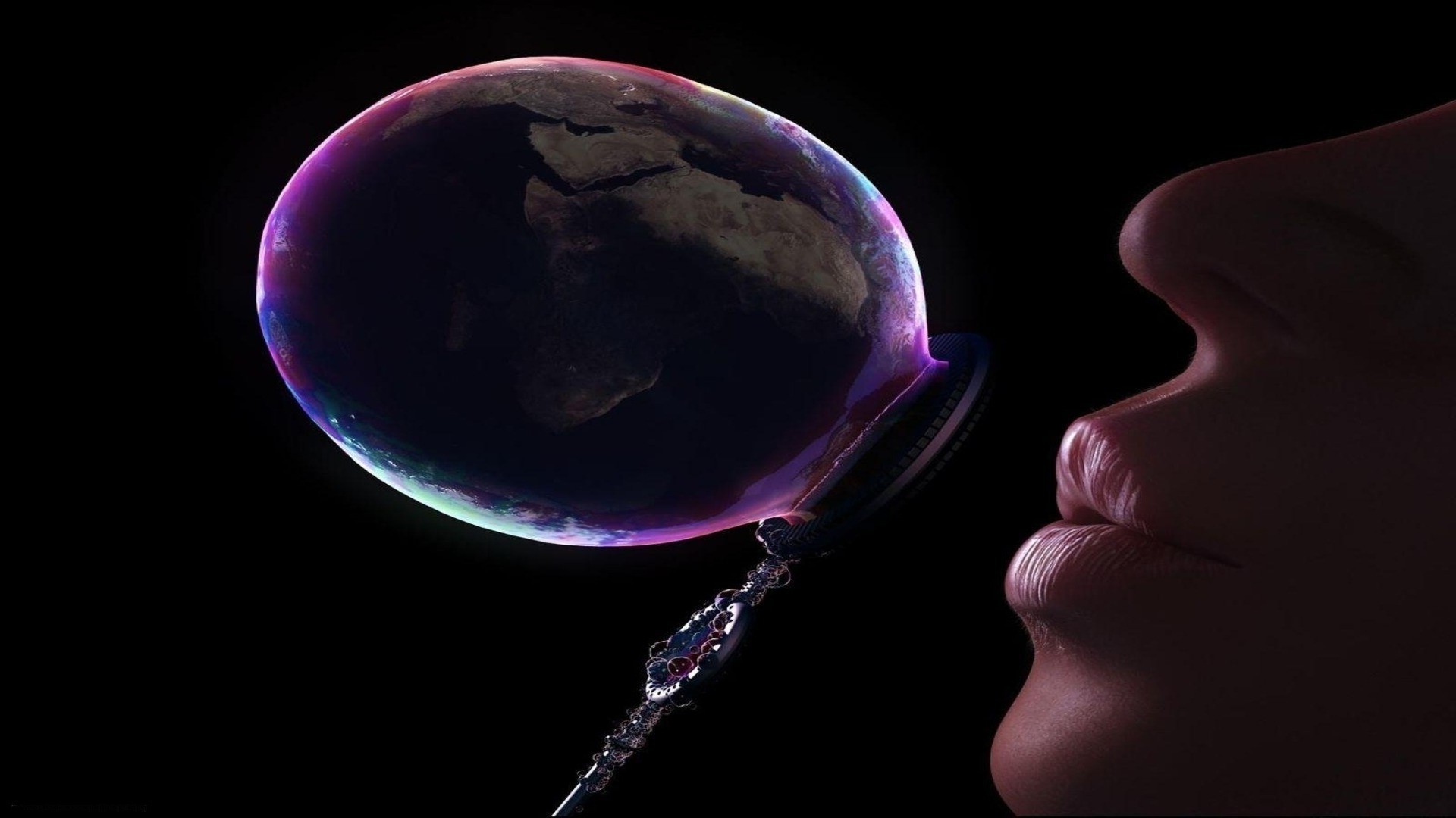 Kobieta nadmuchuje bańkę mydlaną przez rurkę
