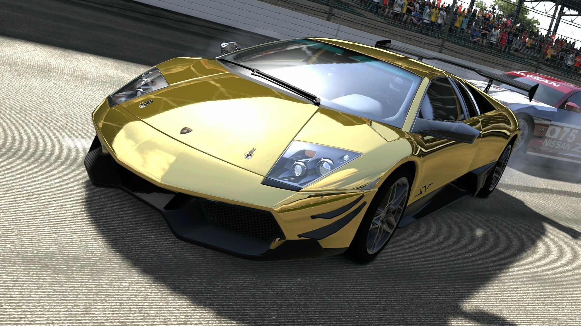Złoty samochód na drodze w wyścigu