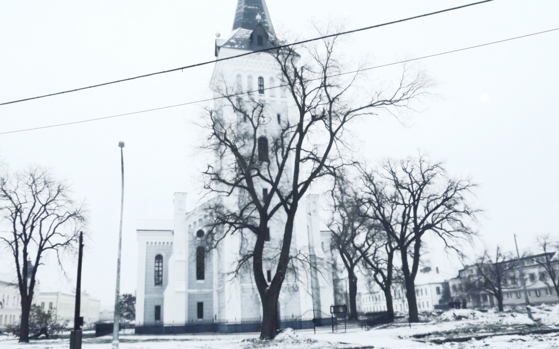 Piękny most nad rzeką przy pochmurnej pogodzie