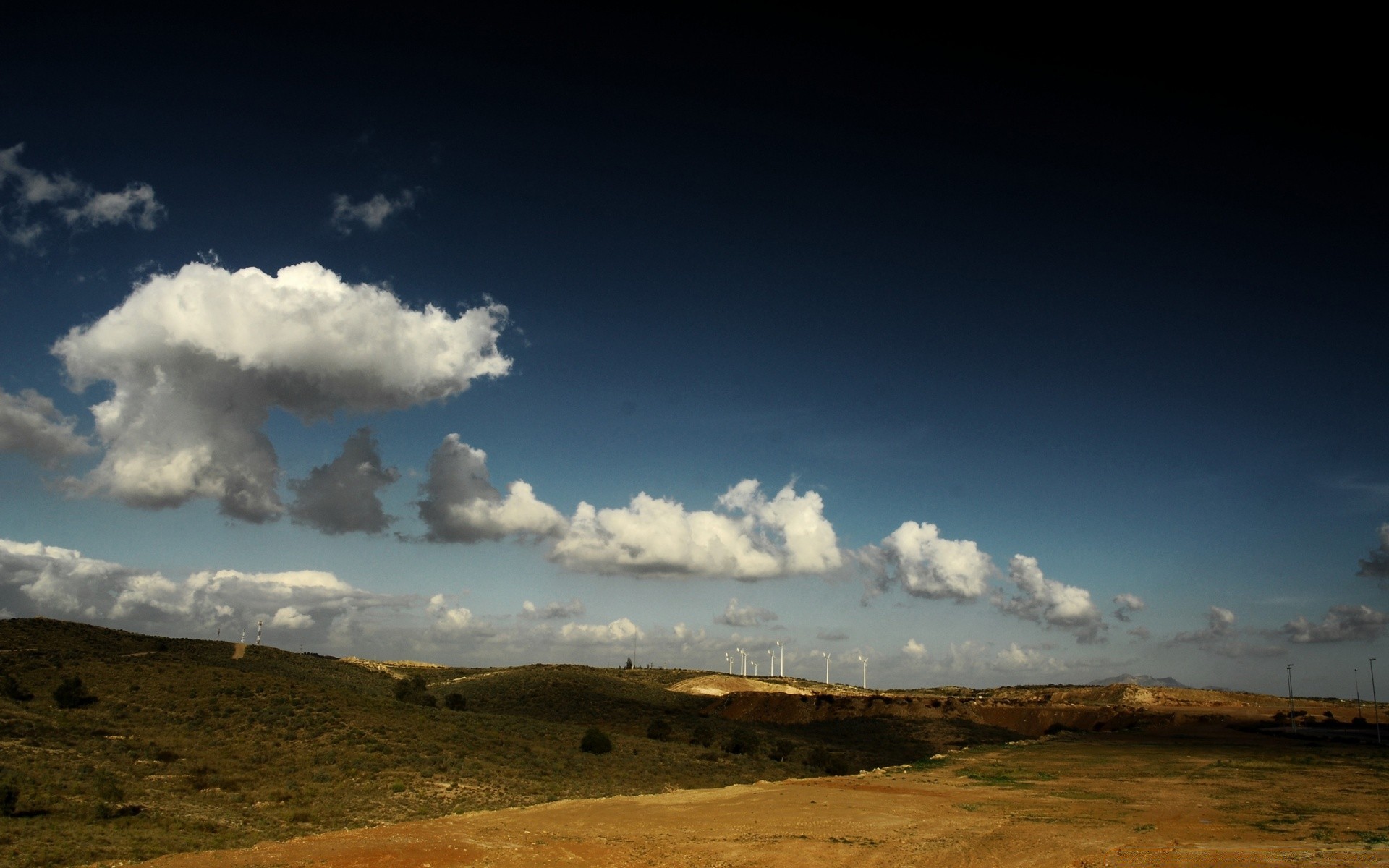 Wiatrak na wzgórzach na tle nieba