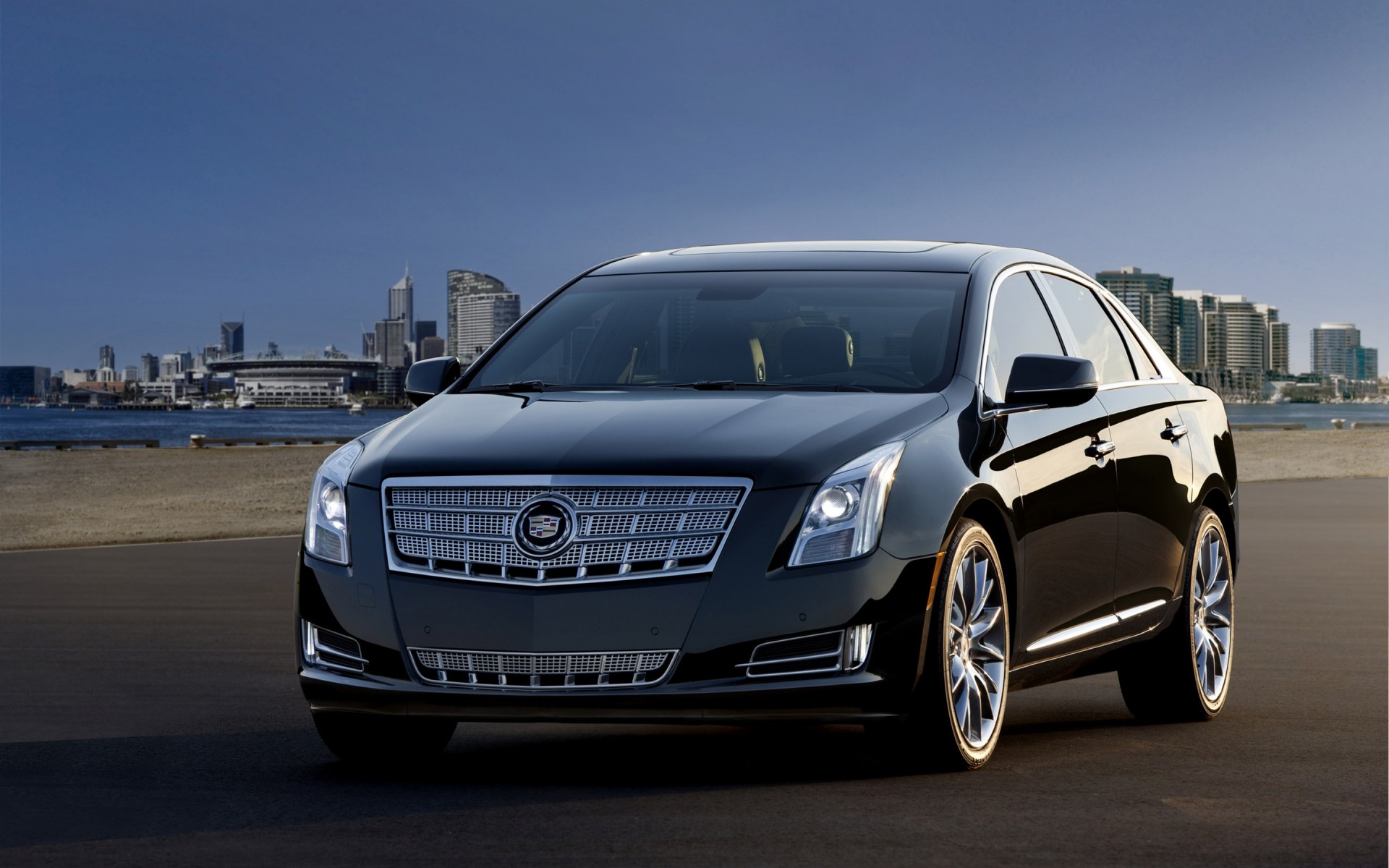 Czarny samochód stoi na brzegu w pobliżu miasta