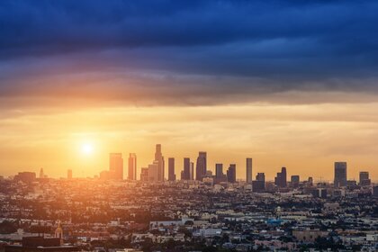 Miasto o zachodzie słońca na wygaszacz ekranu