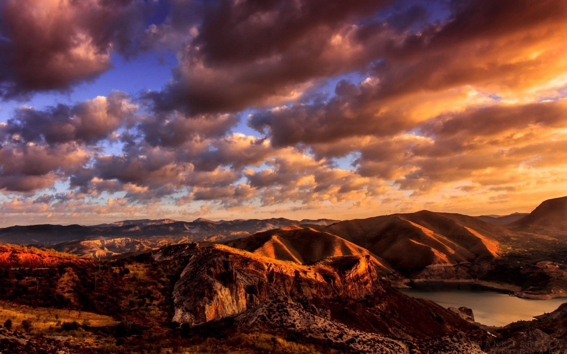 Krajobraz równiny Zachód słońca niebo Natura Rzeka chmury