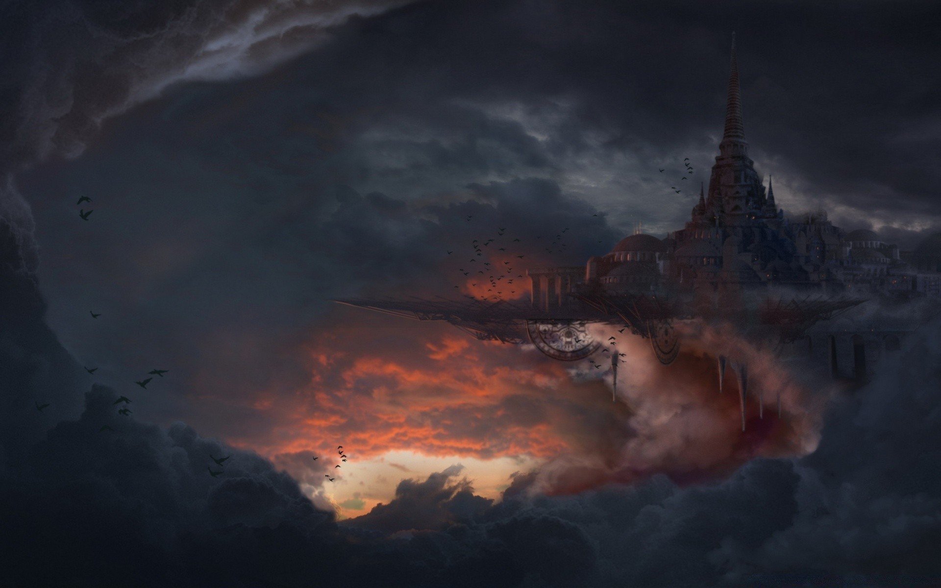Chmury, zachód słońca i Pałac na niebie