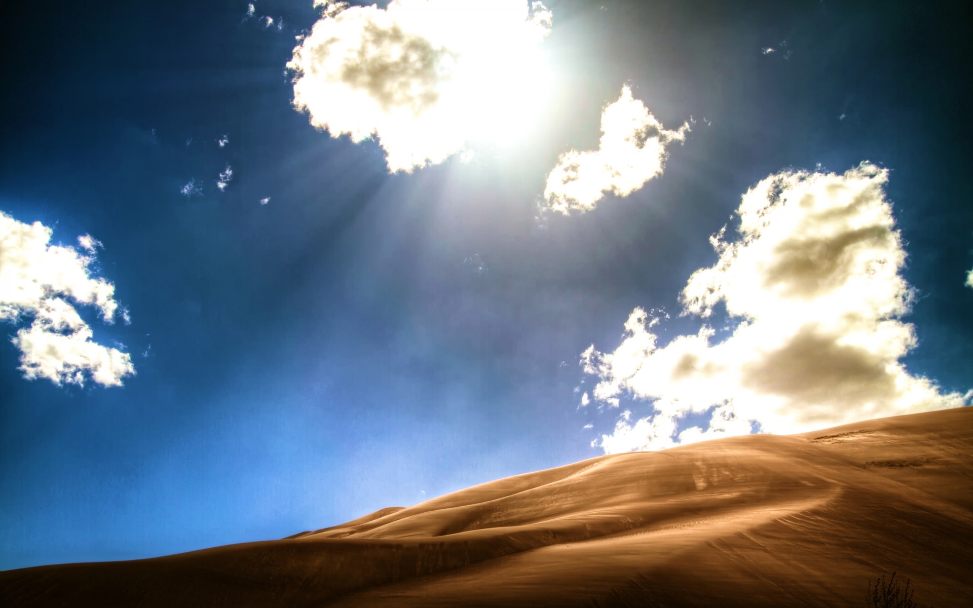 Krajobraz zachodu Słońca na tle deszczowych chmur