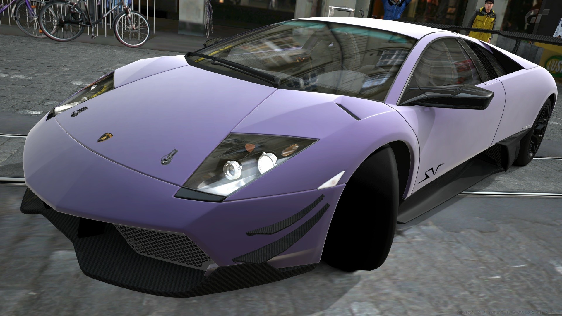 Fioletowy samochód sportowy w środowisku miejskim
