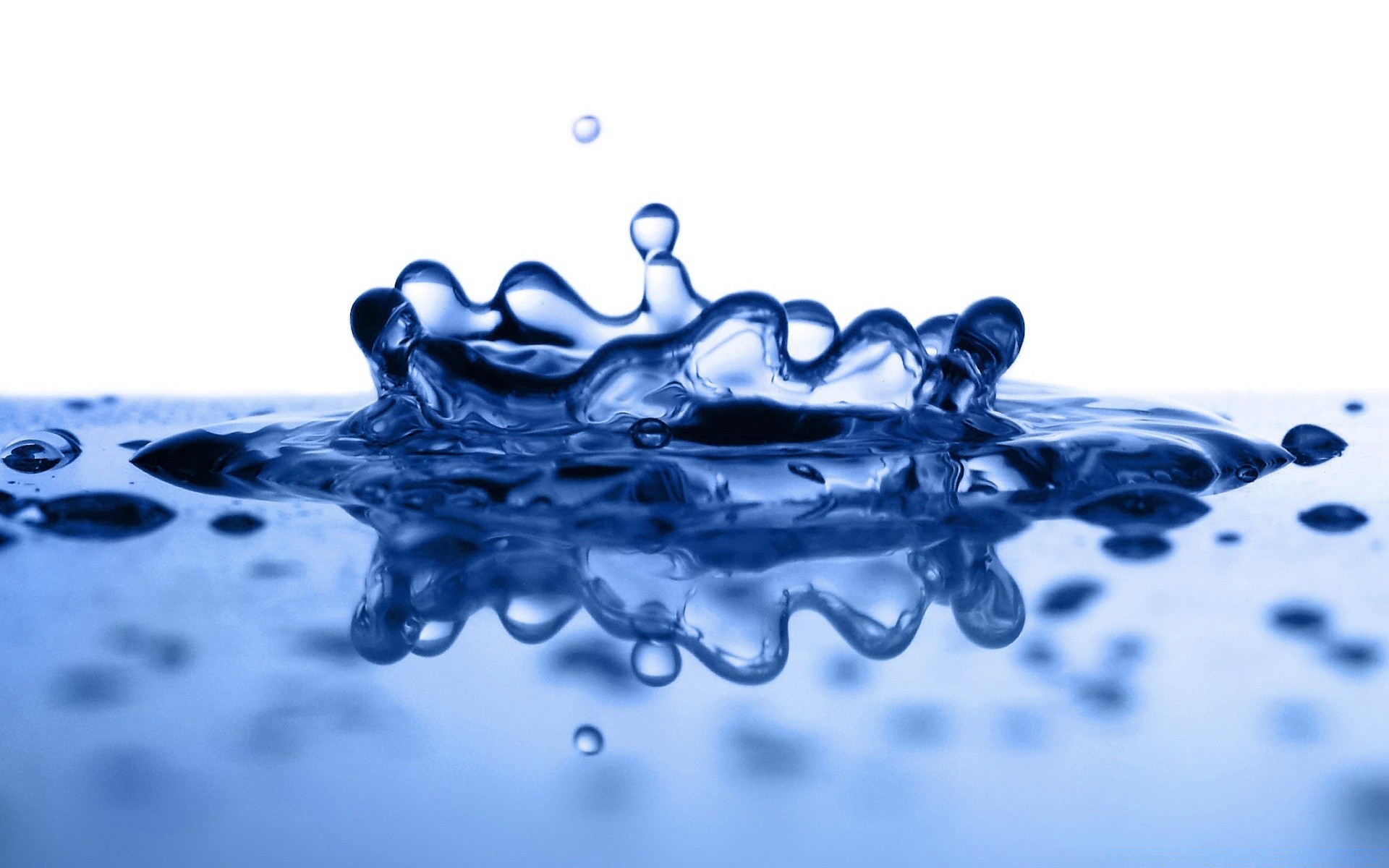 Zbliżenie wody z bąbelkami i kroplami w Kolorze Niebieskim
