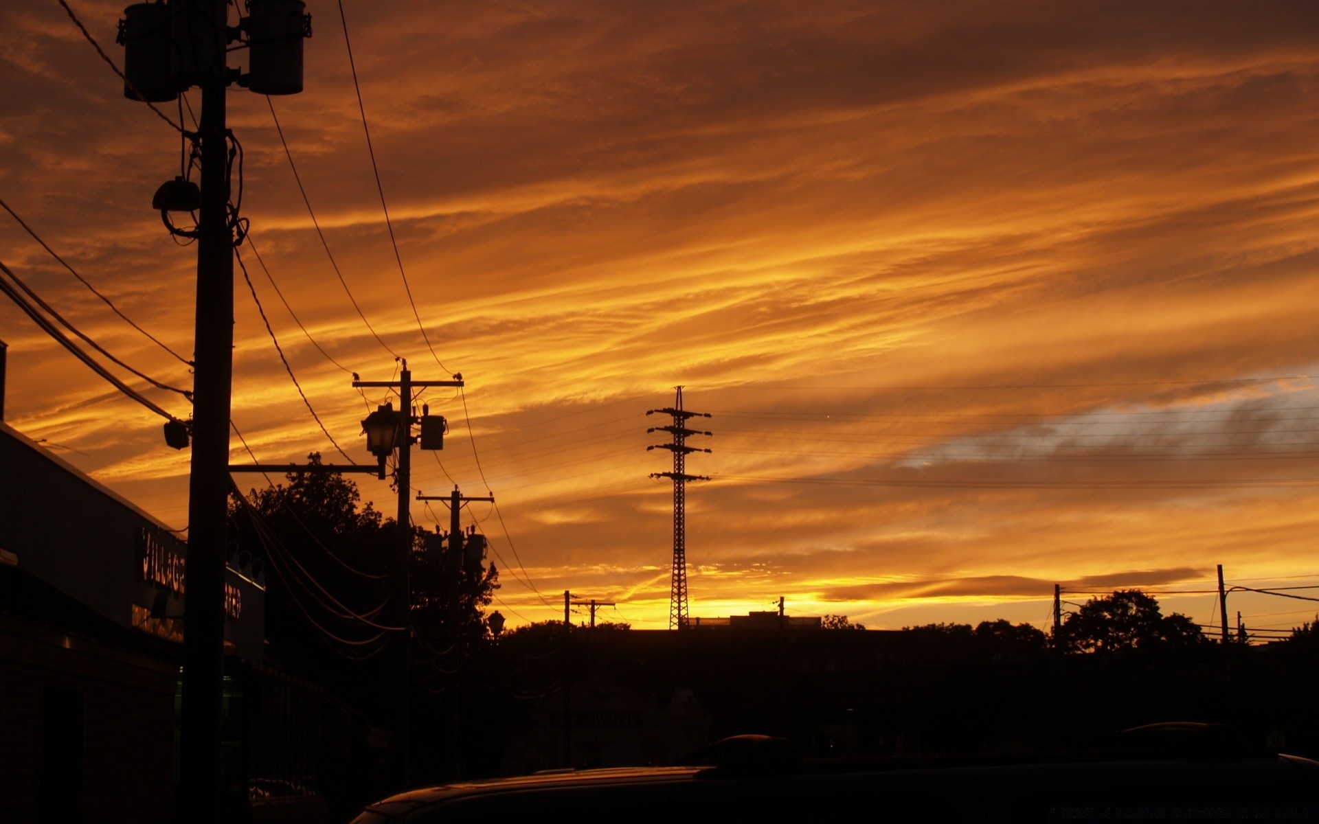 Niebo o zachodzie słońca z chmurami wiszącymi nad wodą