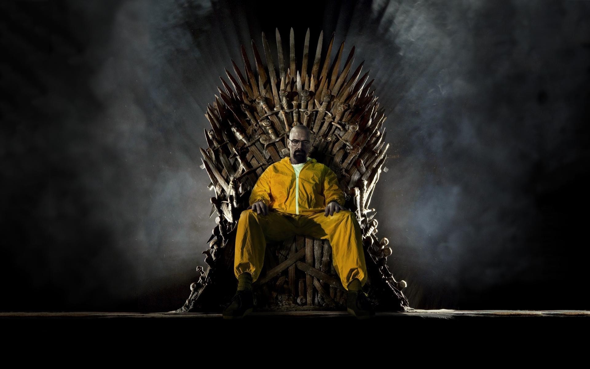 Mężczyzna w żółtym garniturze na tronie