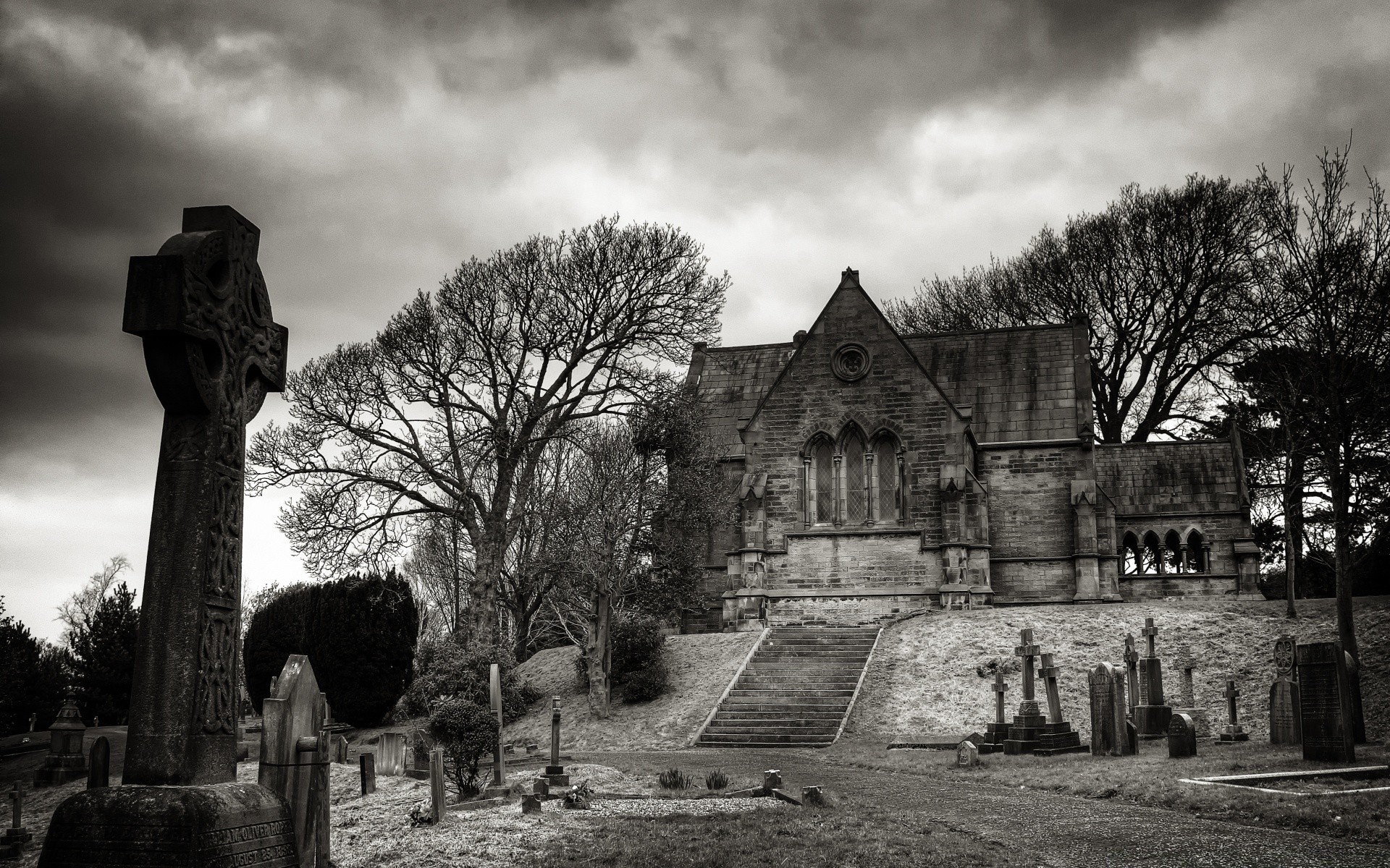 Czarno-biały cmentarz Vintage