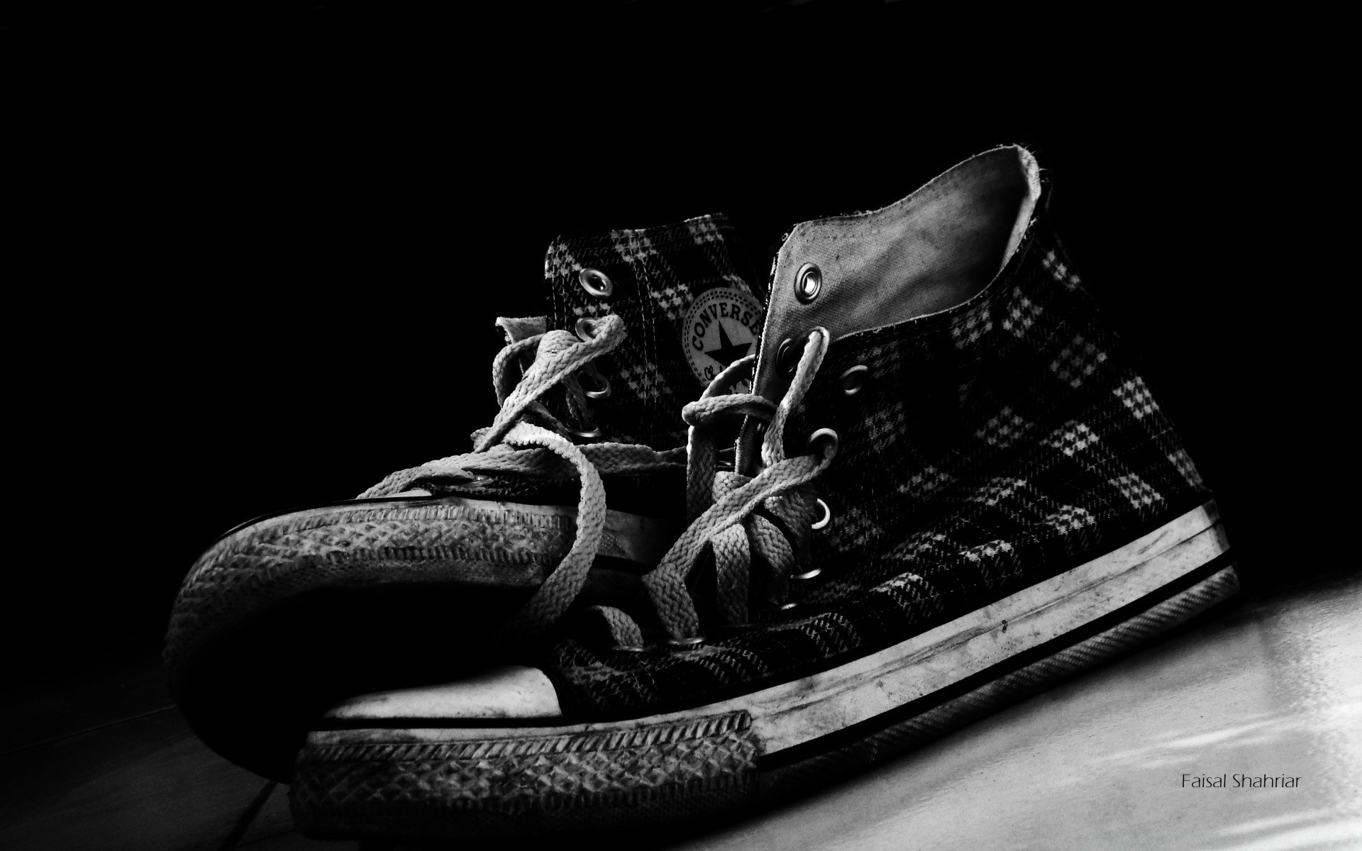 Noga w czarnych tenisówkach z białymi sznurowadłami