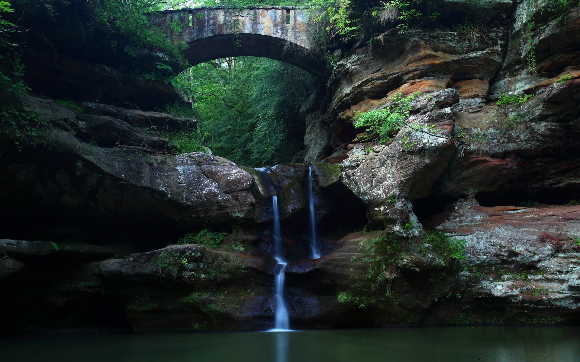 Trawa rośnie na skałach pośrodku szybkiej rzeki